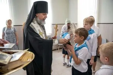 Далее Его Преосвященство епископ Герман совершил чин освящения первого учебного заведения в Сочинской епархии — православной школы имени святых равноапостольных Кирилла и Мефодия, расположенной на территории Прихода храма святителя Николая Мир Ликийских Чудотворца Адлерского района г. Сочи.