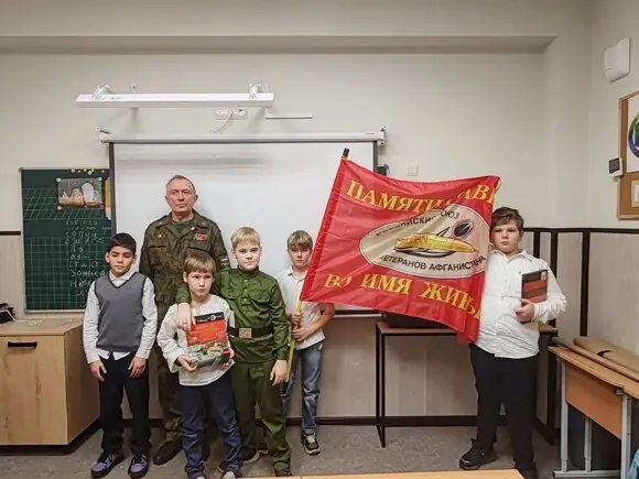 В преддверии этого праздника в нашей школе прошёл урок Мужества, который был подготовлен подполковником запаса Старцевым Евгением Ивановичем совместно с нашими учениками.